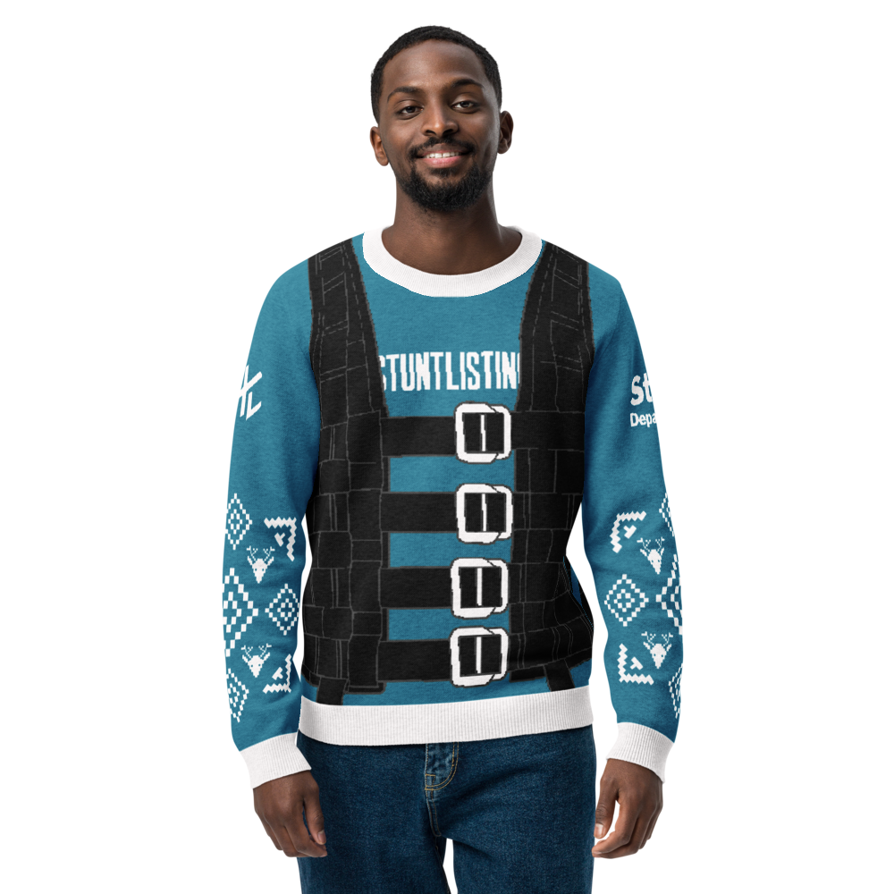 Made with soft, comfortable knit fabric, it’s perfect for on-set downtime, wrap/holiday parties, or everyday wear. The harness graphic is purely decorative— please, no real rigging or stunt use. Show off your love for stunts with this really ugly sweater!